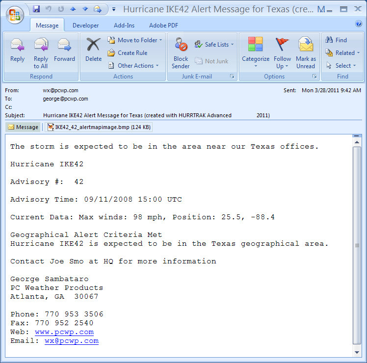 We love all of our improvements, but believe that this 2011 enhancement will really make you stand out with those you support…a genuine WOW factor!!! Similar to the Automatic Summary Reports, we completely reworked the EMail Alert function. The result has been a much more intuitive interface that supports more flexibility when defining the “Alerts”. In addition to identifying which users will receive an alert, you can also indicate which storms to include (or exclude) as well what schedule is best for each alert. ***We have also created a NEW ALERT which will notify a user whenever one (or more) of their locations is expected to be impacted by a storm.*** These features really need to be experienced to be fully appreciated!