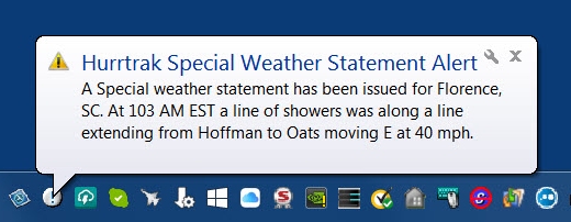 • Alerts are emailed to both the site being affected by the watch or warning as well as other email addresses defined. Additionally, the Watch/Warning information can be displayed as a Windows Tray Pop-up on the user’s workstation which allows for immediate notification.