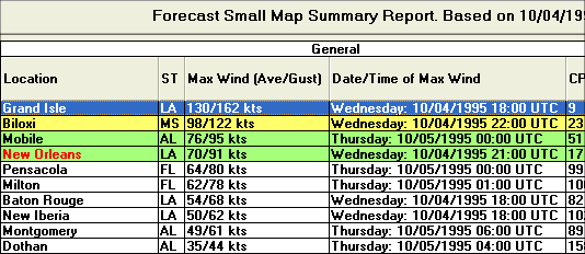 The first set of reports (for New Orleans) indicates the “raw” wind speed calculations. This does NOT take into consideration any local factors.